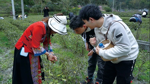 在土家族非遗工坊,民建会员与师生学习西兰卡普织锦技艺,并将茶文化与土家民俗结合,设计出“采茶+非遗体验”复合型旅游产品。这种“茶旅融合”模式既传承了民族文化,又拓宽了当地增收渠道。西兰卡普农民工返乡创业园负责人表示:“此次民建会员和旅游职业学院的师生不仅带来了技术支援,更通过年轻化、创意化的茶文化传播,为园区增添了文化吸引力。希望通过实训,培养兼具茶艺技能与文旅运营能力的复合型人才,服务乡村振兴?!?/p>