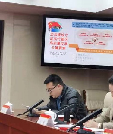 川渝高竹新区是四川省人民政府、重庆市人民政府携手合作共建的首个新区,也是全国首个跨省域新区,承担了联动川东北渝东北一体化发展、拓展优化成渝中部地区发展空间的战略重任。通过实地调研和借鉴先进经验,刘飞龙提出法治建设是高竹新区高质量发展的关键要素,认为在高竹新区建设过程中要同步推进法治建设,更加注重系统性、整体性、协同性,要切实通过政法工作的高质量发展推动经济社会的高质量发展。针对新区范围内两地突出存在的管辖问题、法律适用问题,刘飞龙建议在建制上设置高竹新区法院,在管理上实行扁平化管理,在法律适用上尽快形成协作机制和统一常见案件类型法律适用标准。