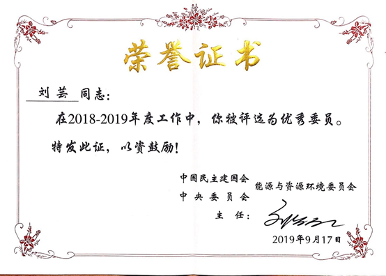 9月16日至19日,民建中央能源与资源环境委员会(以下简称能资环委)在云南昆明召开2019年度全体委员大会?;嵋橛赡茏驶肺魅瘟醣鞒只嵋椴⒆鞴ぷ鞅ǜ?,民建中央副主席吴晓青出席会议并作讲话,民建中央副主席、云南省委主委高峰代表民建云南省委致欢迎辞。本届能资环委自成立以来,在各位主任、委员共同努力下,有效发挥集体优势,取得了可喜的成绩。为了以更高的标准、更实的措施,干出更新的业绩,营造出“比学干帮超”的良好氛围,本次会议还表彰了一批积极参与能资环委工作的委员,民建北碚西大一支部主委刘芸被评选为2018-2019年度优秀委员。