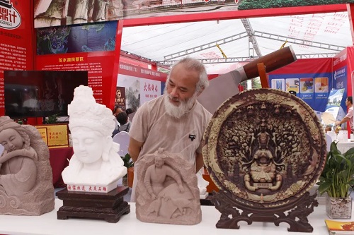 大足区入选的5件作品中,大足民建会员、国家级非遗项目“大足石雕”市级代表性传承人刘能风设计制作的“吹笛女”和“养鸡女”造像、“知足常乐”“富足有余”小石雕作品、荷叶童子小石雕共3件作品入选。该石雕系列作品创作灵感来源于世界文化遗产大足石刻,并通过艺人的巧妙构思、制图、制模、精雕、细磨、抛光等工艺,全手工精雕细镂而成。作品仪容秀丽,形象生动,具有较高的艺术价值和收藏价值。特别是作品“知足常乐”“富足有余”,刘能风创作时在肉肉的“足”上刻画一只“知了”,寓意为“知足常乐”;肉肉的“足”刻画一条“鱼”,寓意为“富足有余”,其创意和寓意独特,深受欢迎。
