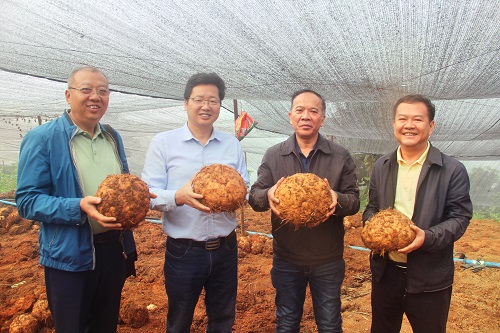 “魔芋用途广泛,既可作为食品,又能作为原材料。要使魔芋形成特色高效产业,就必须对魔芋种质资源、品种选育、种植栽培、产品研发、加工技术、市场开发等进行科学研究,构建完整的魔芋产业链?!闭攀⒘稚钣懈写サ厮怠?/p>